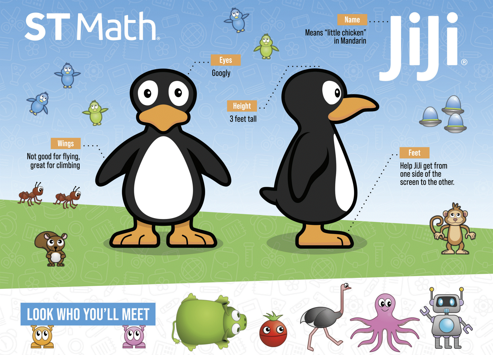 1. ST Math features a penguin named JiJi.