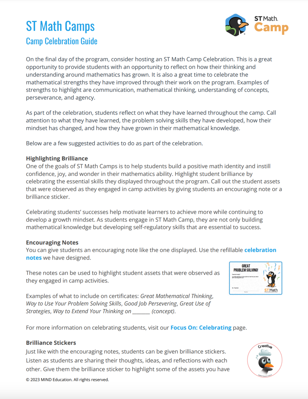ST Math Camps are designed to support students in building agency, confidence, perseverance, and intrinsic motivation. An important part of the ST Math Camp experience is setting goals.